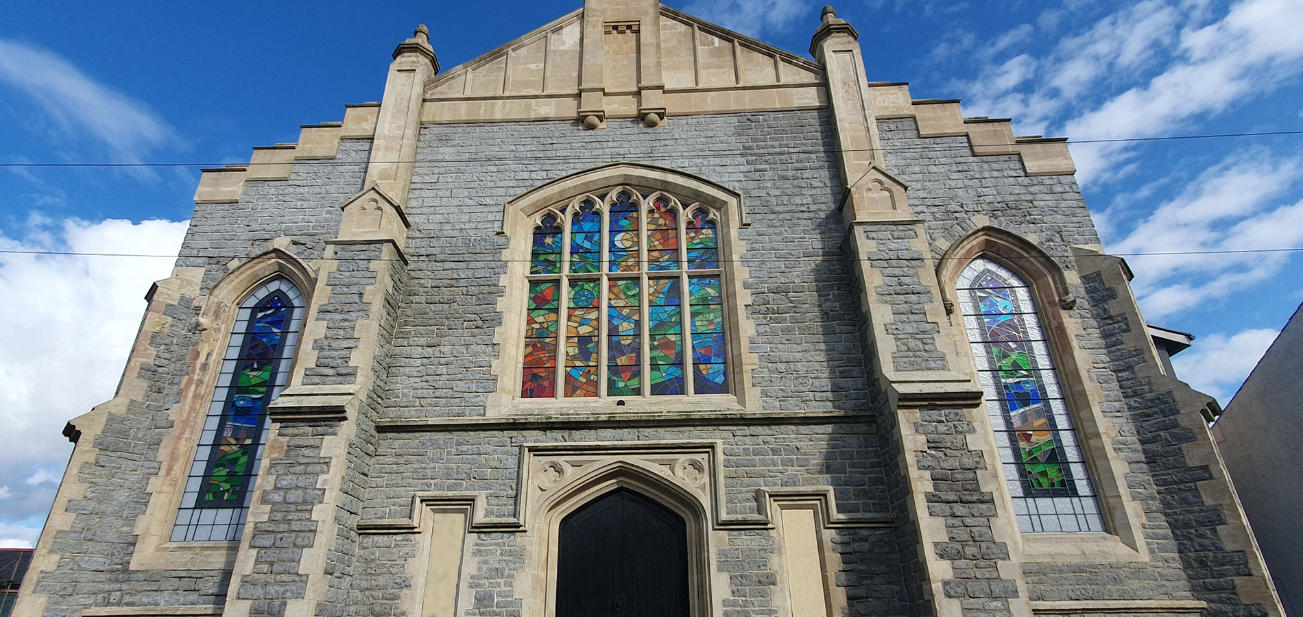 In 2023, Lightworks completed one of our largest and most ambitious contracts to date. It involved the design, production and installation of three new large stained glass windows for the historic facade of St. Paul’s Community Centre (formerly St. Paul’s Church), in Penarth.